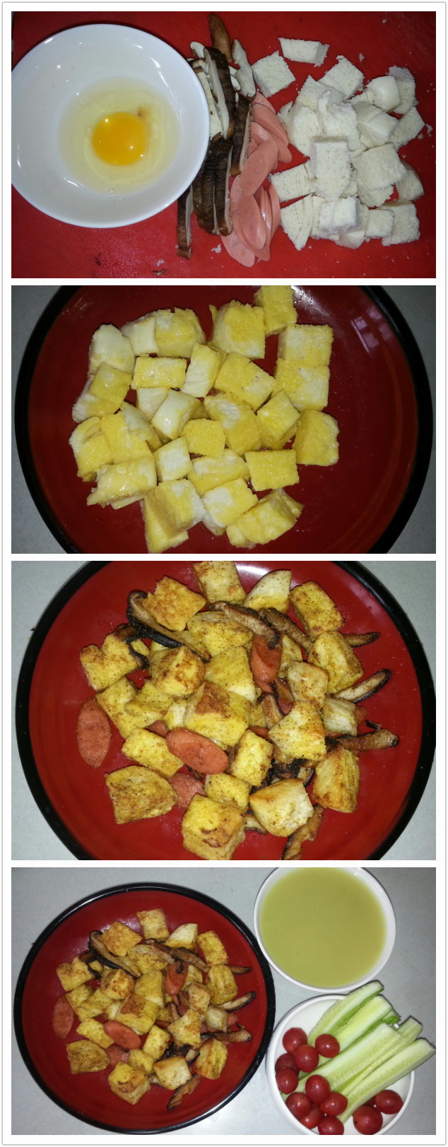 第27天、孜然炒馒头+黄瓜西红柿+绿豆粥