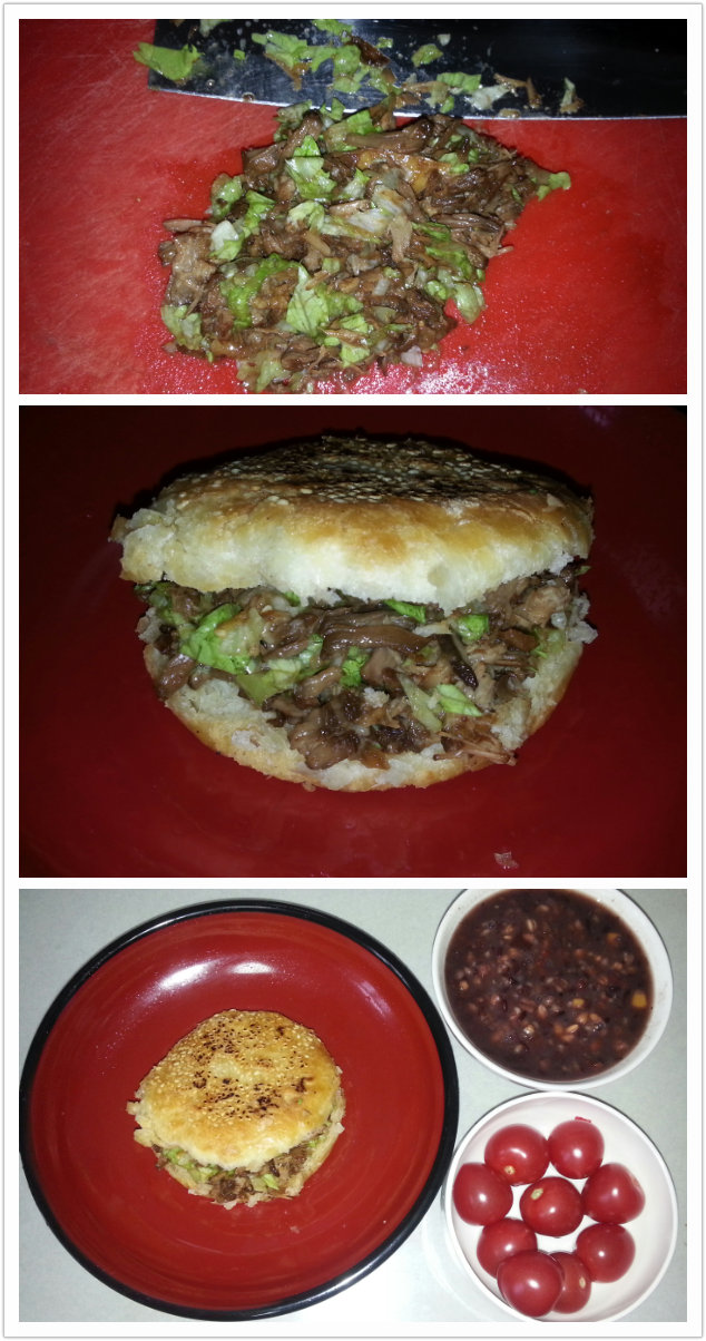 超市买的烧饼早晨起来平底锅热一下,头天吃剩的炖牛肉和生菜一起剁碎,把肉末加到烧饼里即可!一碗黑米粥外加一份圣女果!早点摊上、饭店里肯定不会用放心肉的,所以宝贝爱吃肉的话还是自己在家做比较放心!