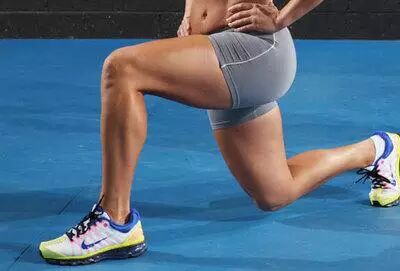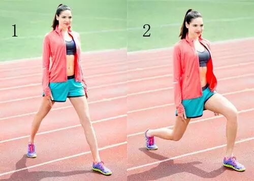 这个动作不仅能起到塑臀效果,还能消耗腿部的热量。动作要领:双脚分立,跨步展开,一只脚向前迈出一大步,身体缓缓下降,两膝弯曲,然后恢复站立姿势。完成后,另一只脚重复刚才动作,膝关节弯曲不要超过90°,在前的膝盖靠脚踝支撑,在后的膝盖不要抵在地面上。